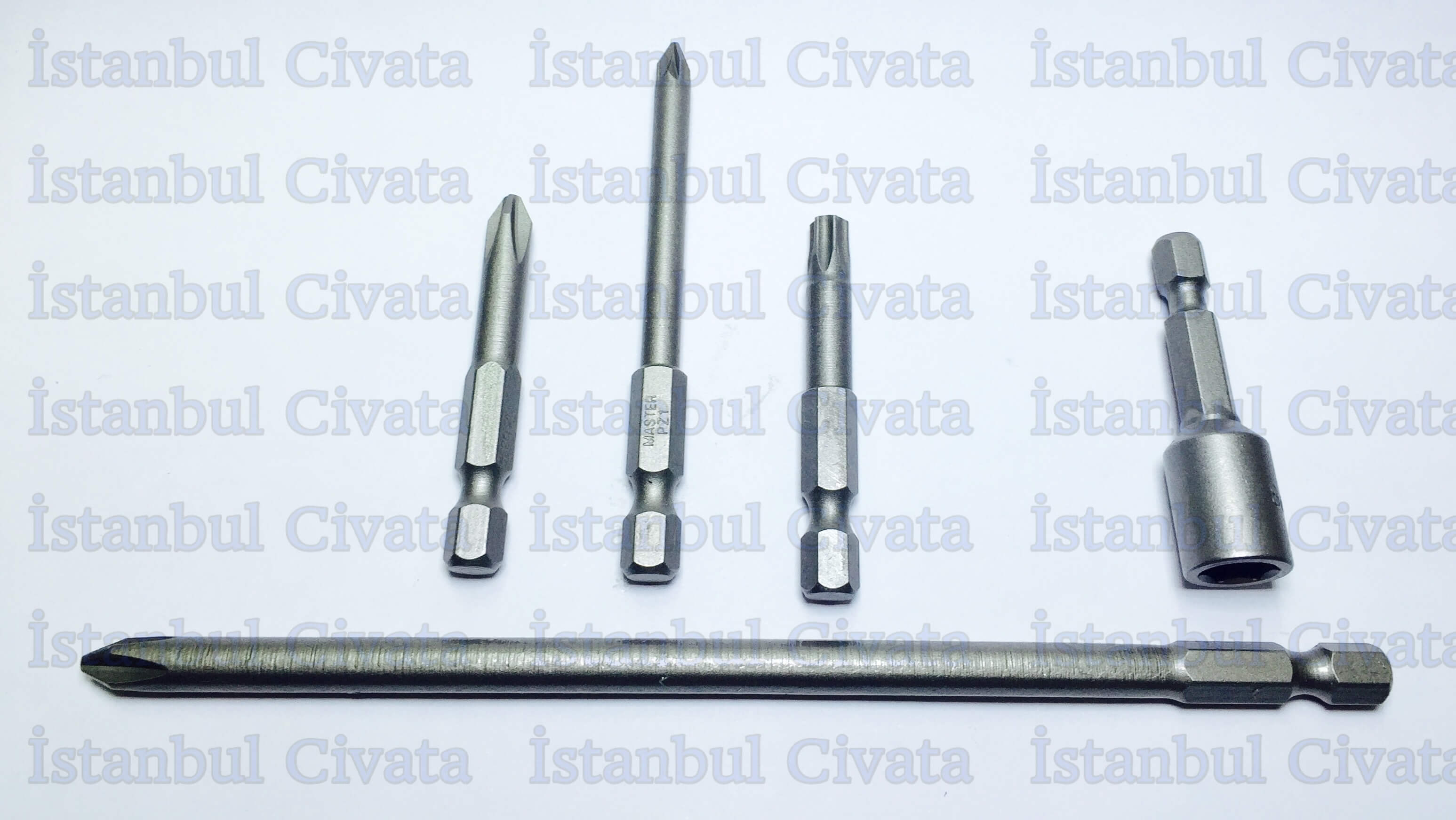 Matkap uçlu ve sunta vidaları için PH, PZ bits uçlarının yanında trapez ve buldex vidalar için uçlarımız mevcuttur.